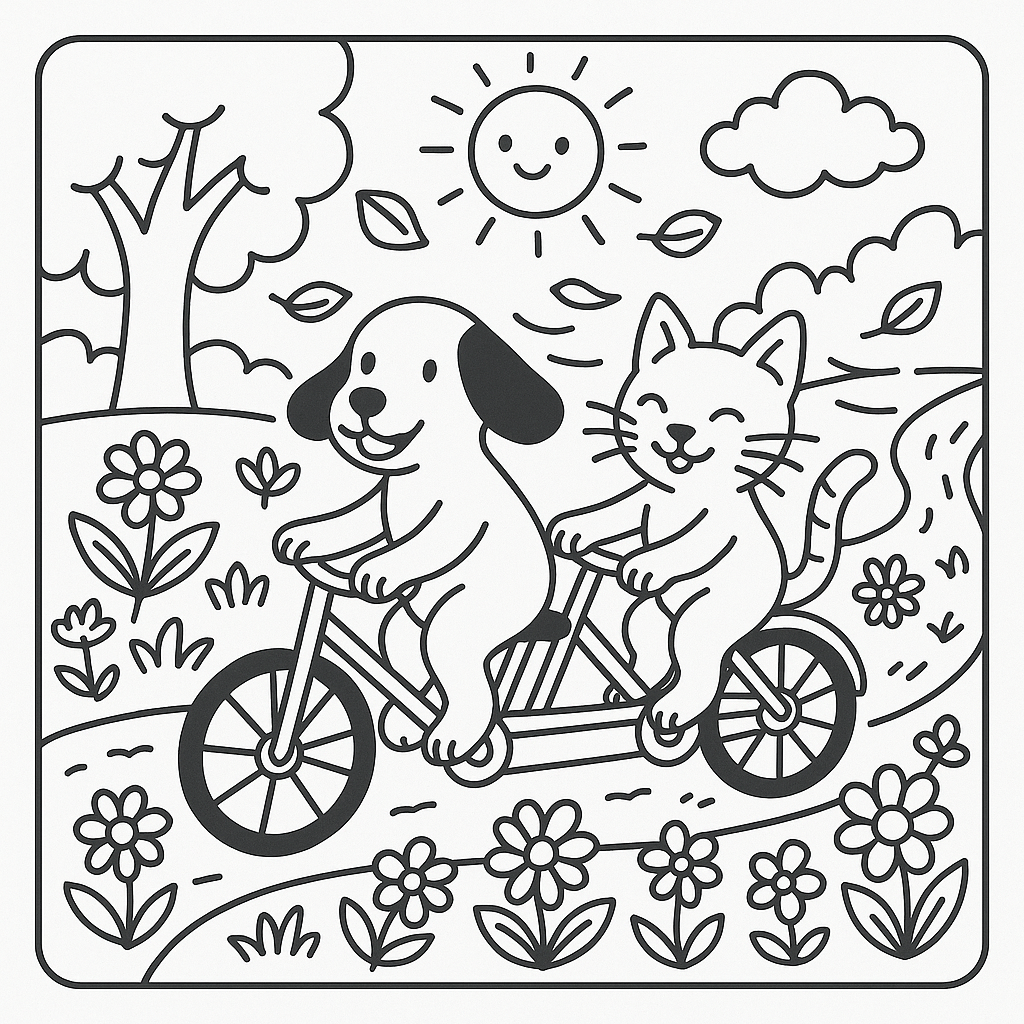 Depois de um delicioso piquenique, repleto de uvas docinhas, melancia suculenta e risadas, o cachorrinho Biscoito e a gatinha Mia decidiram que a tarde merecia ainda mais diversão. Enquanto o coelho Pipoca e o ursinho Mel ficavam arrumando a toalha, os dois amigos encontraram uma bicicleta dupla encostada perto de uma árvore.
