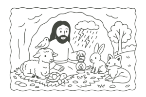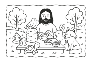 O dia seguia calmo enquanto Jesus e seus amigos caminhavam pela floresta. O céu ...