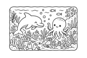 Golfinho e Polvo Exploram um Recife de Corais Encantado