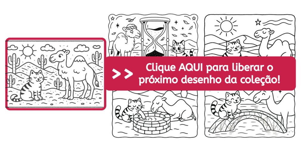 O Camelo e o Gato chegam à entrada do Deserto do Silêncio Brilhante. O céu é parado, o vento congelado, e a areia não cai — ela flutua, imóvel, como se estivesse em pausa. Nenhum som é ouvido, nem sequer seus próprios passos.