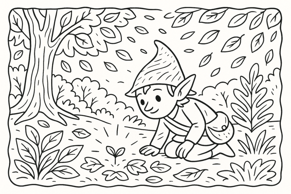 No meio da clareira, enquanto as folhas cochichavam segredos ao vento, Trilo, o duende da floresta, ouvia algo diferente. Um som miudinho, como um canto de gota, vibrava perto de uma raiz exposta. Curioso, ele se abaixou e viu: uma pequena semente pulsava bem devagar, como se respirasse.