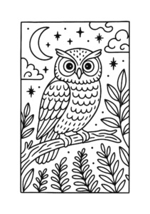 Com o céu estrelado acima, Tula encontrou Olívia, a coruja sábia, sentada em um ...