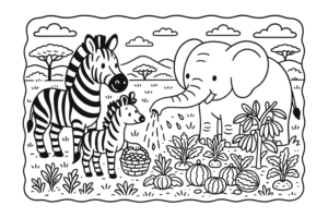 Depois da manhã na horta, Zizi, a zebra curiosa, seguiu seu caminho até a ...