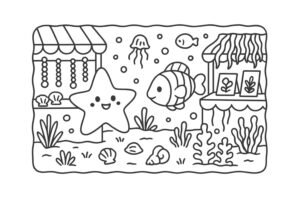 Seguindo um som distante, chegaram a uma feira marinha. Soli, a estrela-do-mar, vendia colares ...