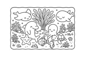 Balu, a baleia sorridente, e Liri, a arraia elegante, organizavam uma festa. Guirlandas de ...