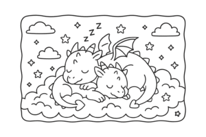 Ao final do dia, os dragões fofos se aconchegaram em ninhos feitos de algodão ...