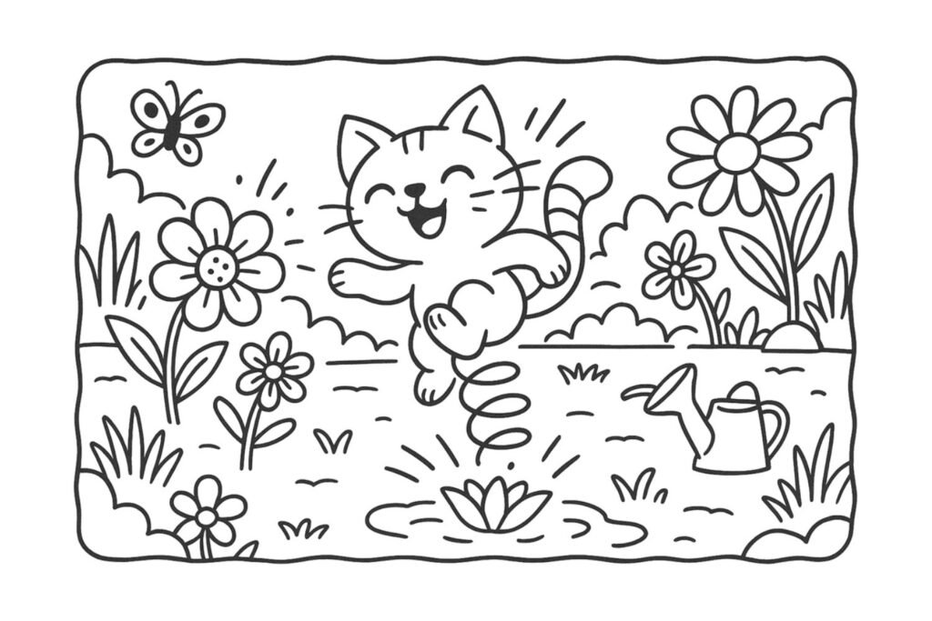O gatinho deu um salto para trás e… puff! Seu rabo virou uma mola!