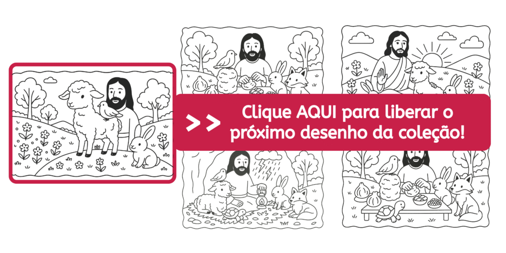 Eles não sabiam para onde iriam, mas sabiam com quem estariam. E isso era o mais importante. A jornada com Jesus era sempre um convite à paz e à amizade verdadeira. A tartaruga apareceu devagarinho, carregando nas costas uma pequena flor. “Esperei o dia todo por vocês”, disse ela, sorrindo. A raposa veio logo atrás, com um brilho curioso nos olhos. “Ouvi dizer que hoje começa algo especial”, comentou.