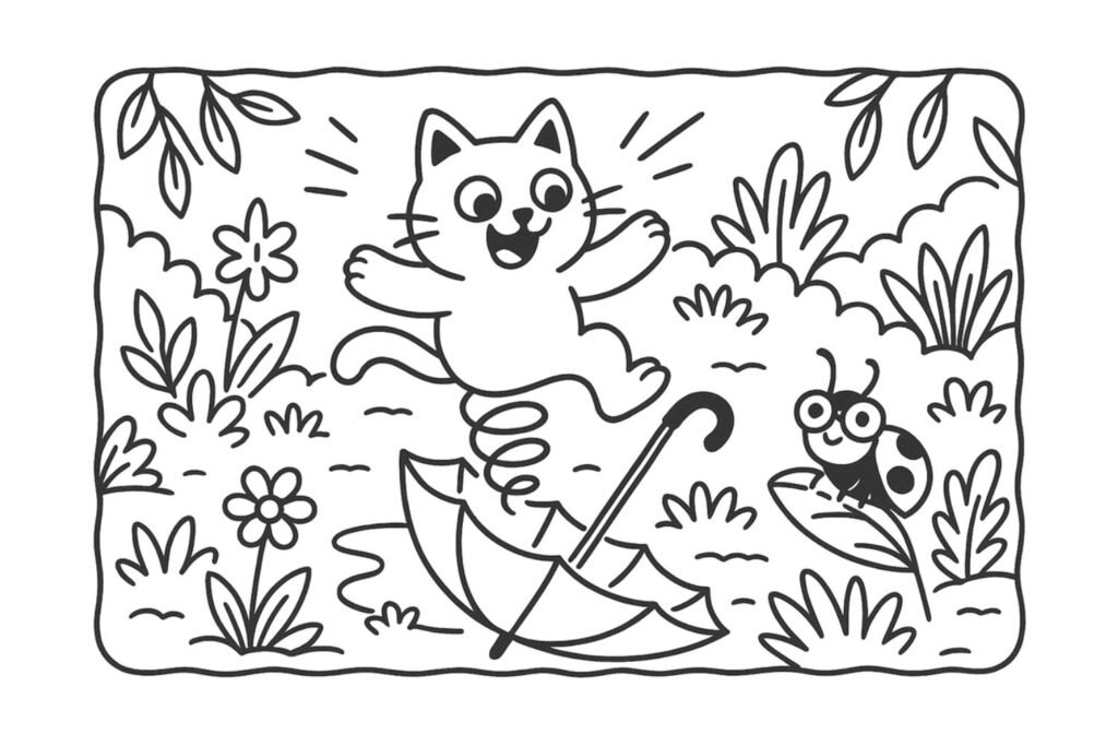 Subiu tão alto que passou por cima da horta da Dona Tartaruga e foi parar direto no topo de um guarda-chuva aberto, esquecido no meio do jardim.