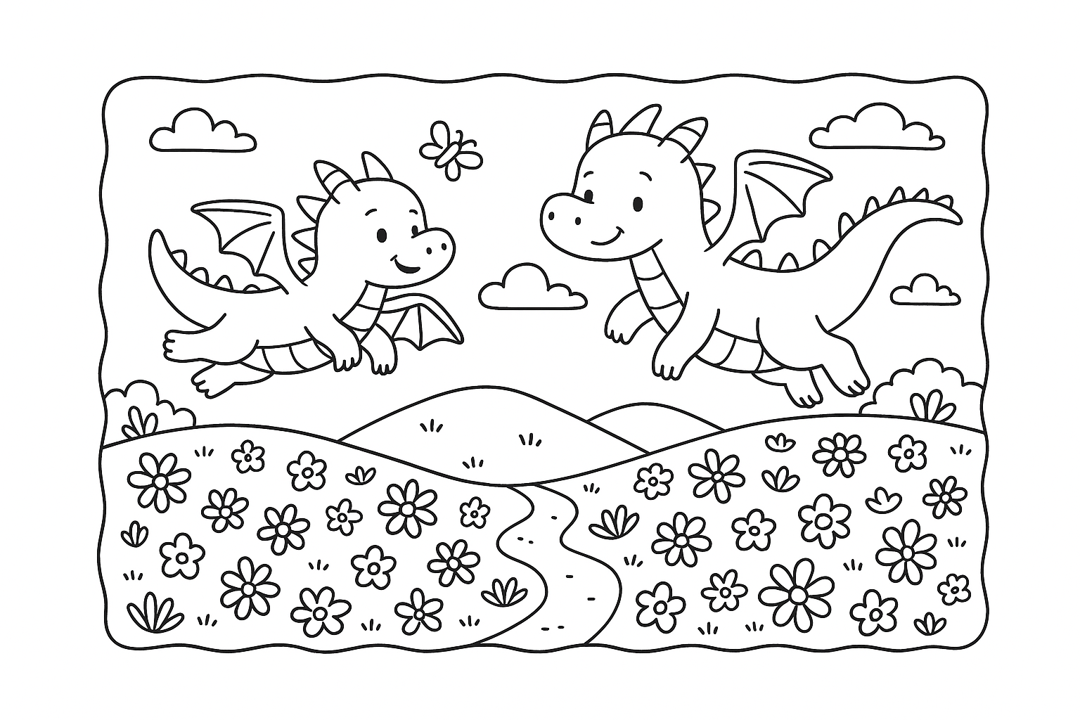 Borboletas coloridas dançavam ao redor, e o aroma das flores criava um perfume natural e suave. Os dragões fofos riam e rodopiavam no ar, soltando pequenas faíscas brilhantes de suas asas aveludadas.